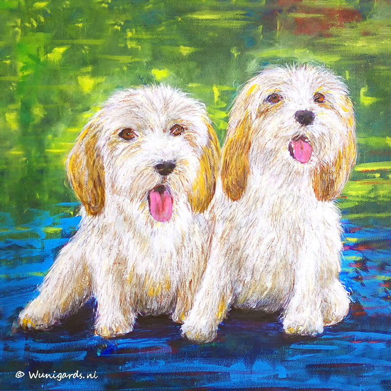 Mijn twee hondjes, Petit Basset Griffons Vendéen. Acrylverf op canvas 50 x 50 cm.