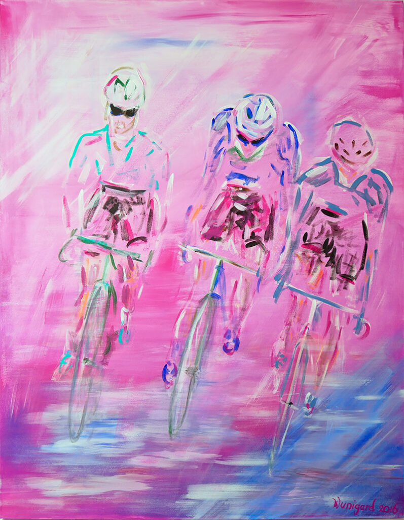 Wielrenners van de Giro d’Italia. Acrylverf op canvas. 70 x 90 x 4 cm