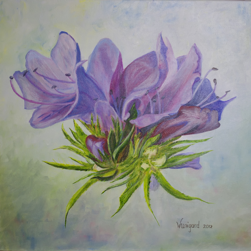 Phacelia tanacetifolia of Bijenvoer. Olieverf op canvas 50 x50 cm .