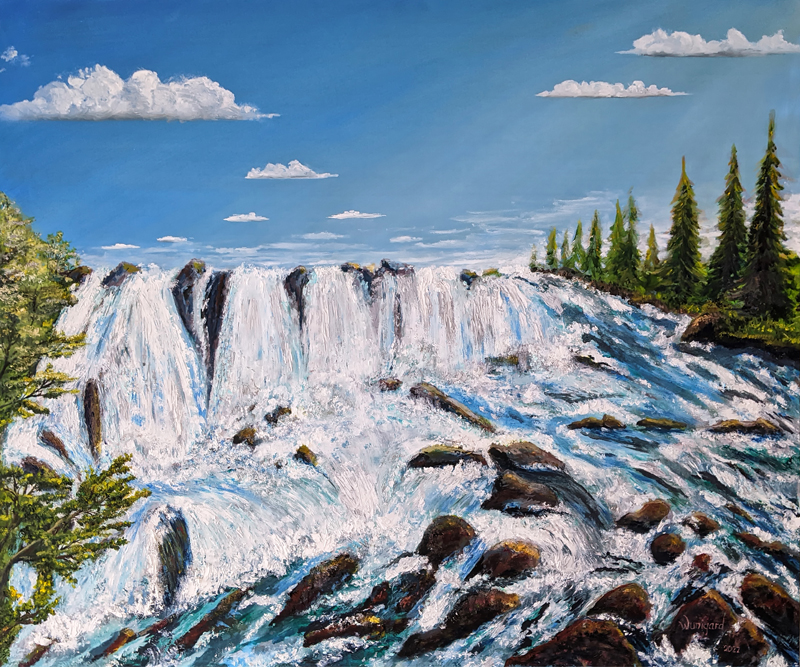 Waterval in Noorwegen. Olieverf op doek 120 x 100 cm x 4 cm, zijkanten bewerkt.