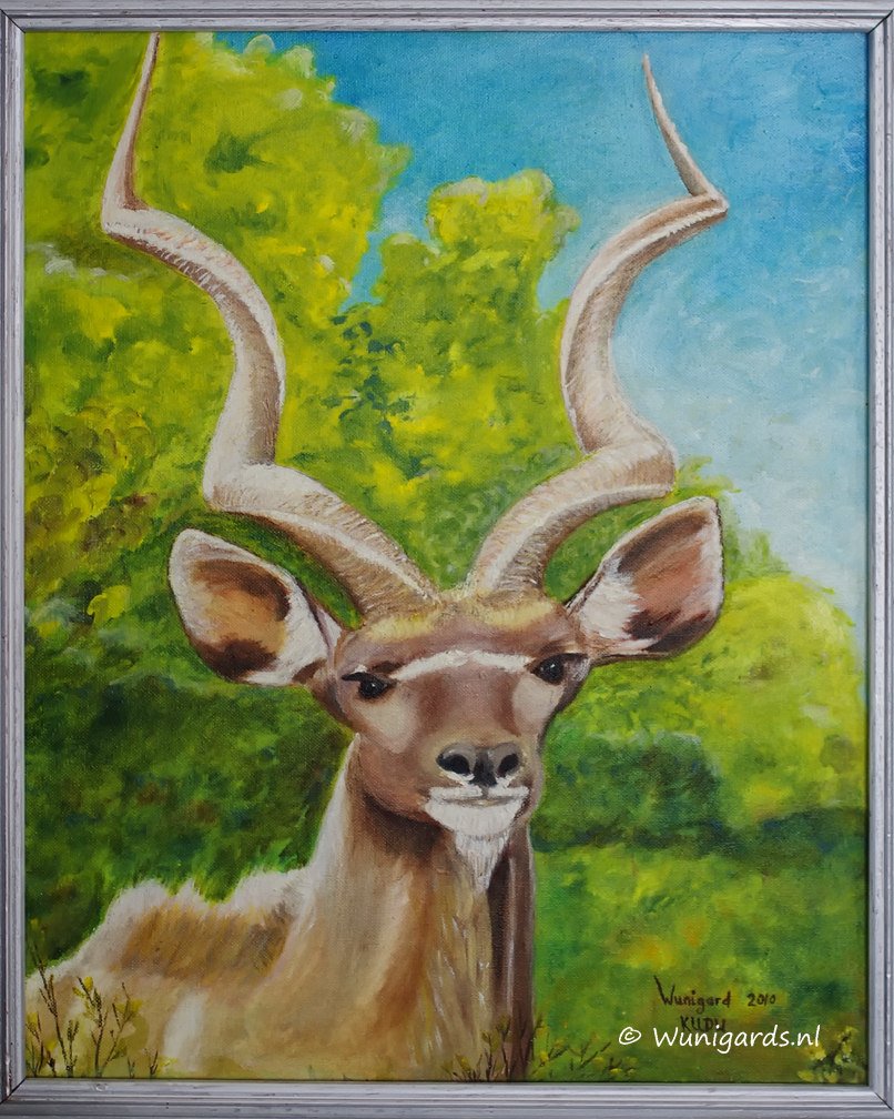 Kudu stier. Olieverf op doek. 40 x 50 cm.